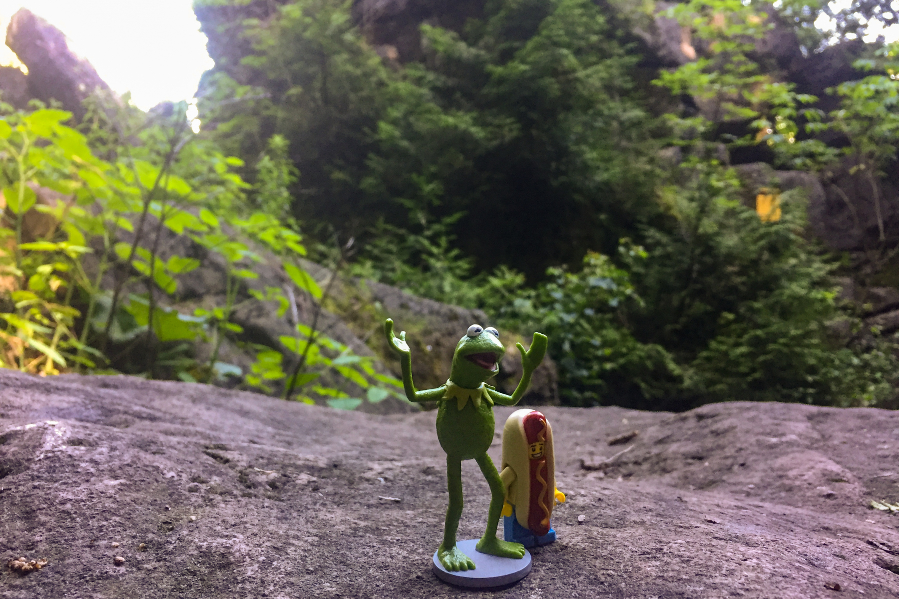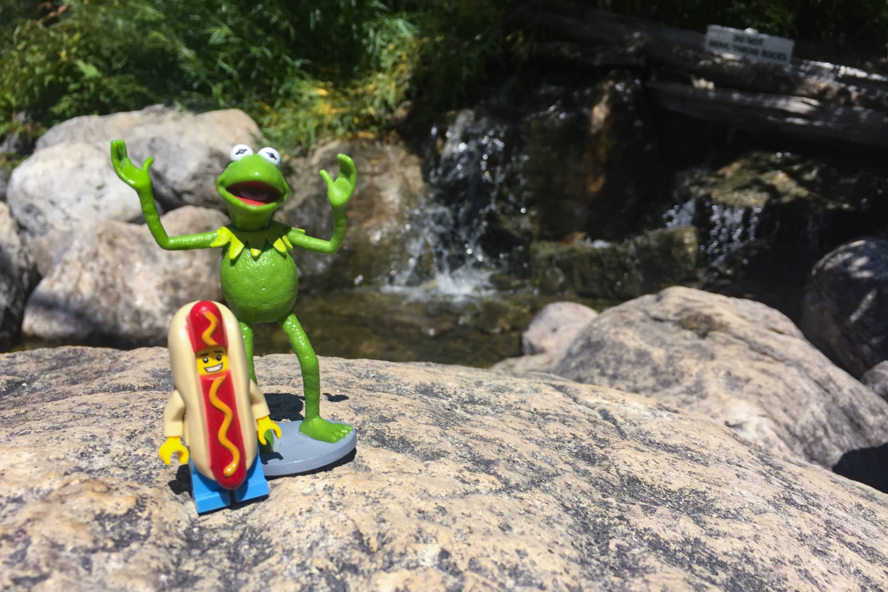 Kermit and Mr Hot Dog Lego Guy Small Waterfall in The Blue Mountains