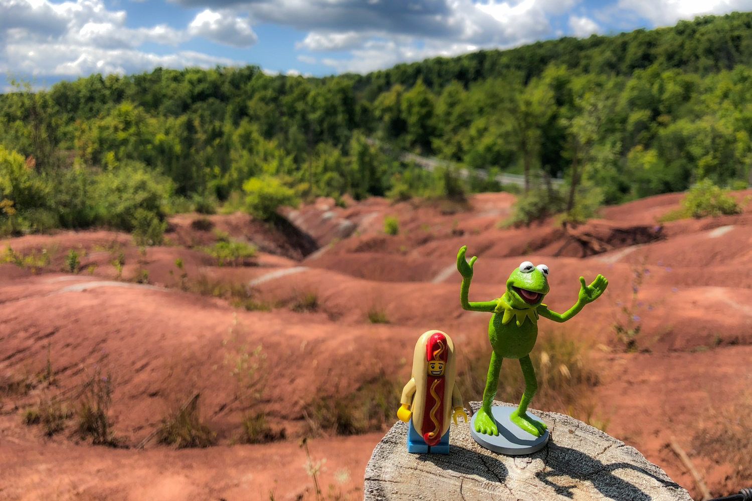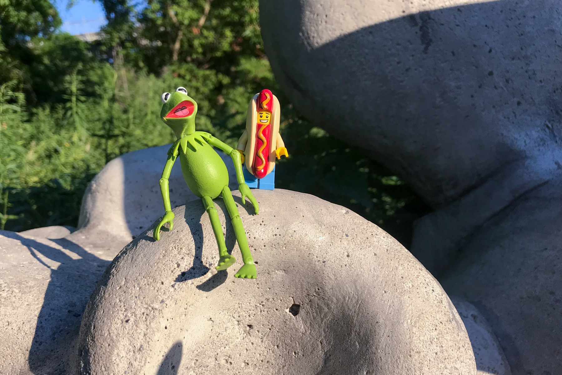 Kermit and Mr Hot Dog Lego Guy Resting After A Long Walk In The in Algonquin Highlands